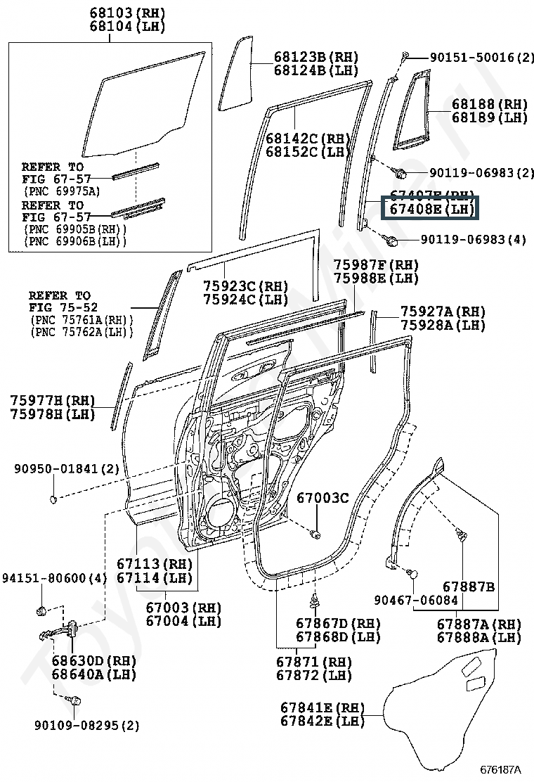 67408-60070, BAR SUB-ASSY, REAR DOOR WINDOW DIVISION, LH