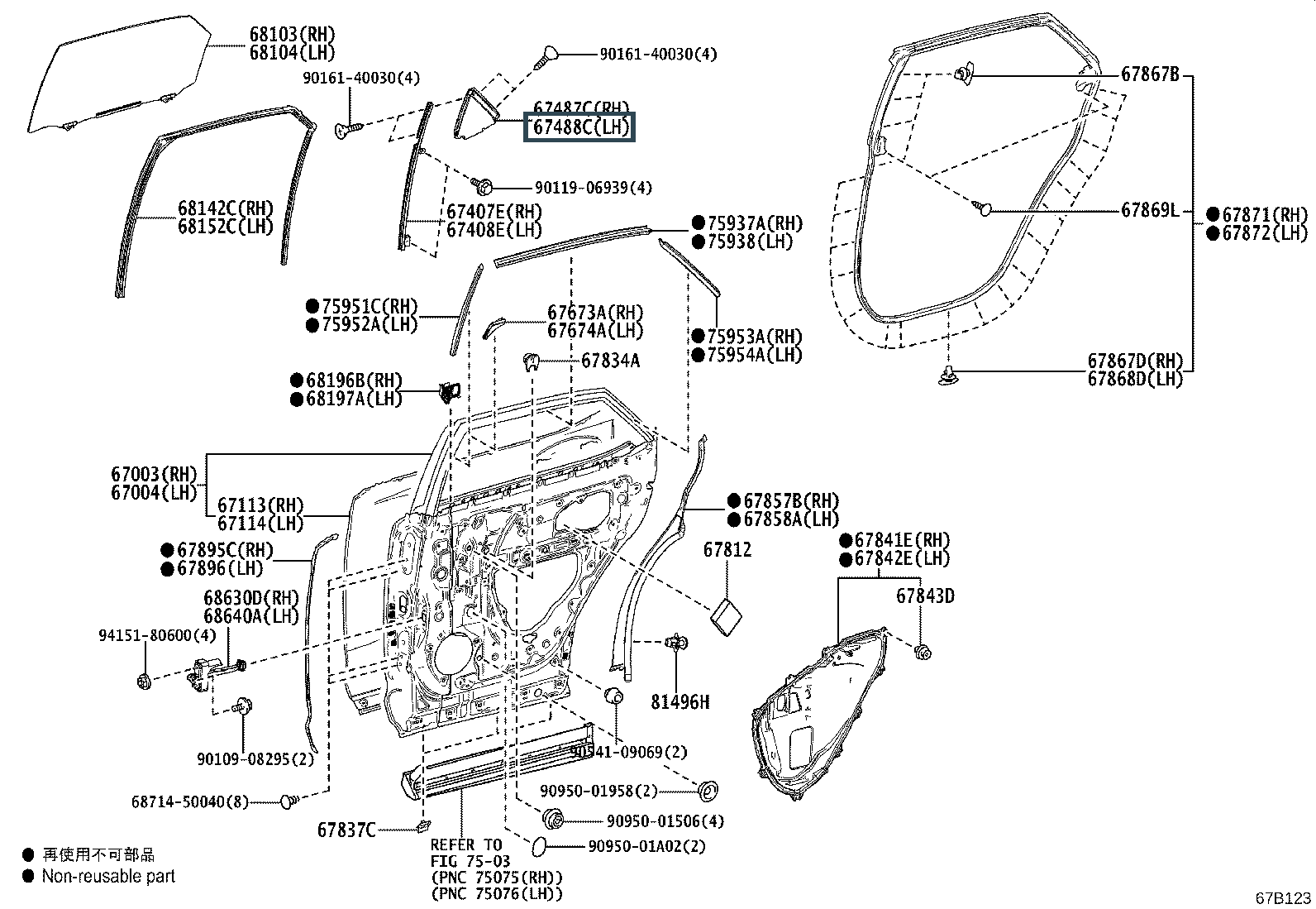 67480-48010, SEAL, REAR DOOR REAR GUIDE, LH