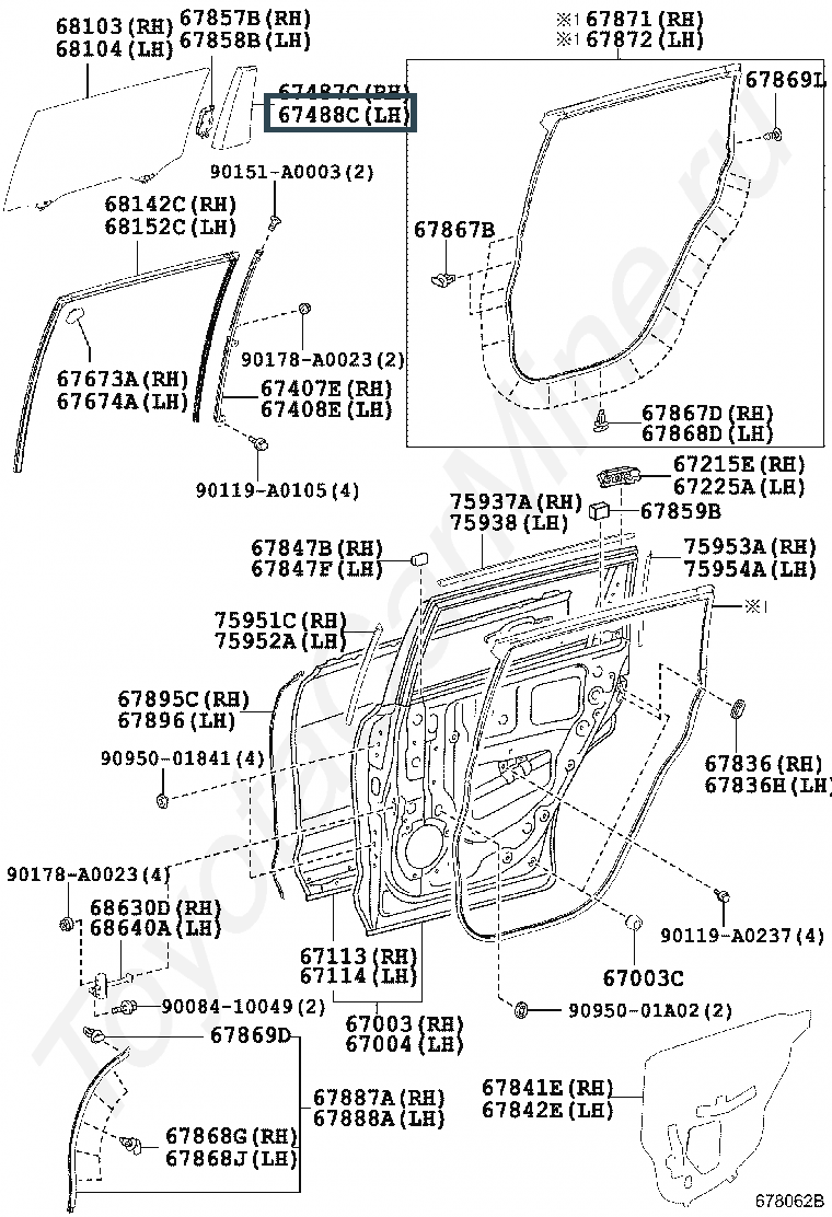 67488-0E050, SEAL, REAR DOOR REAR GUIDE, LH