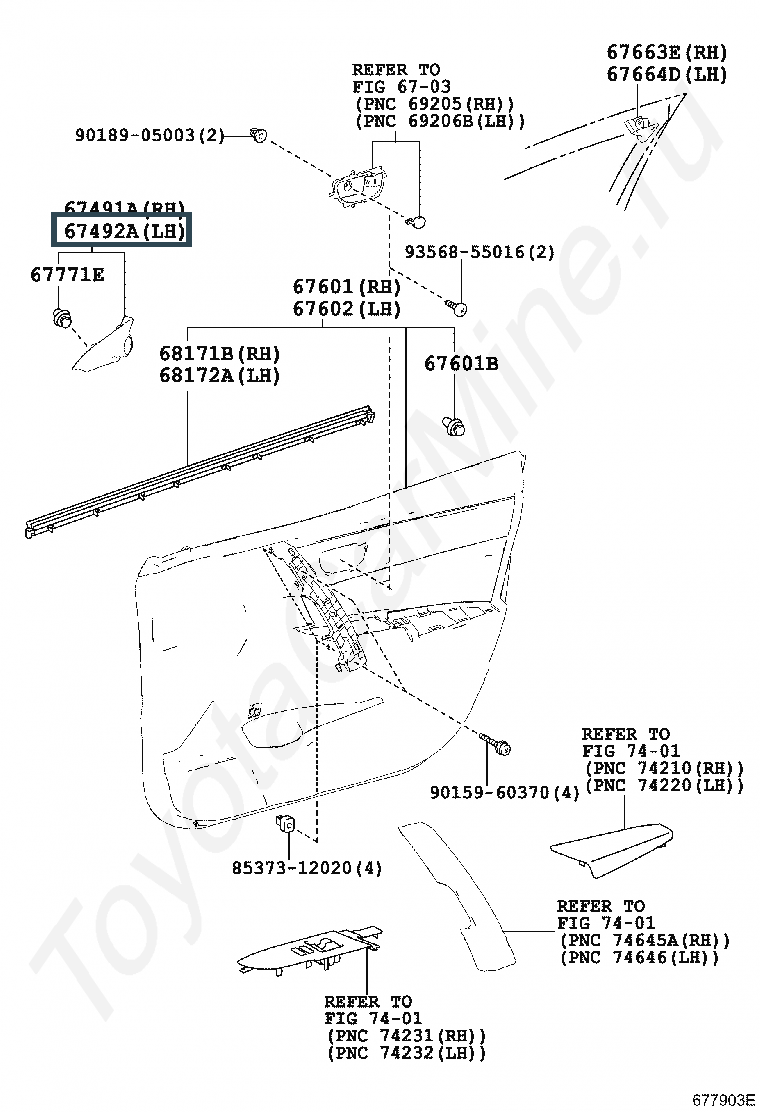 67492-02440, GARNISH, FRONT DOOR LOWER FRAME BRACKET, LH