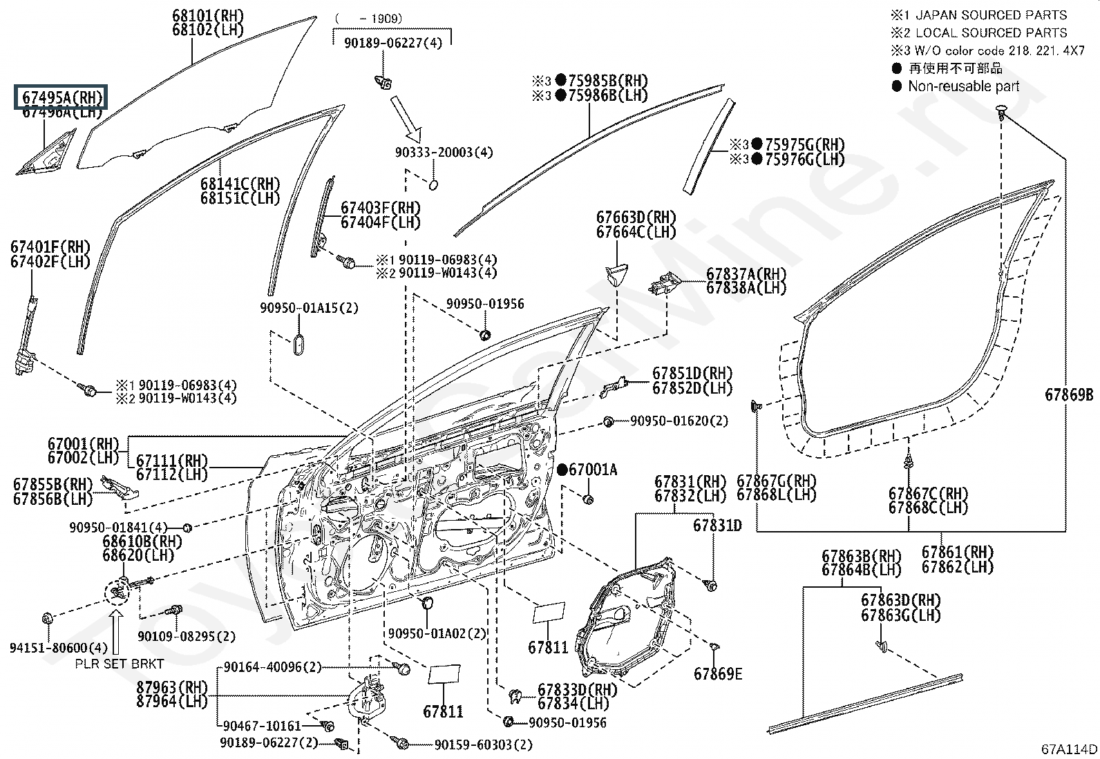 67495-33040, COVER, FRONT DOOR FRONT LOWER FRAME, UPPER RH