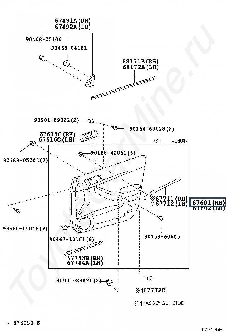 67610-05460-B0, BOARD SUB-ASSY, FRONT DOOR TRIM, RH