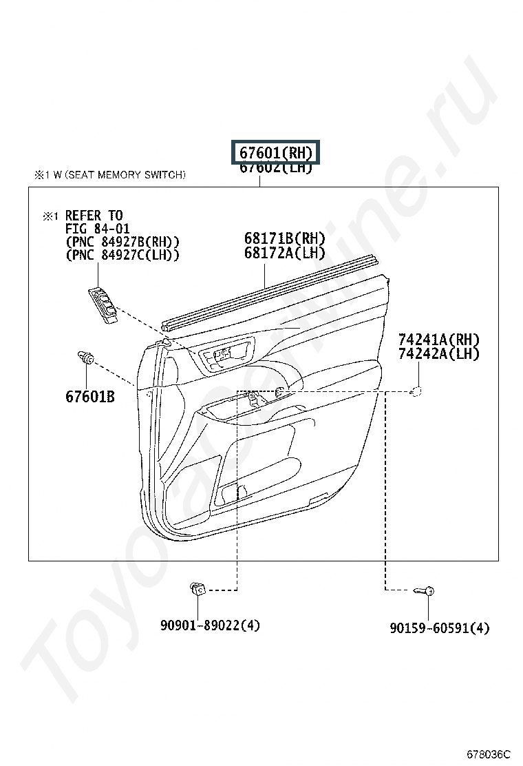 67610-0E611-C0, BOARD SUB-ASSY, FRONT DOOR TRIM, RH