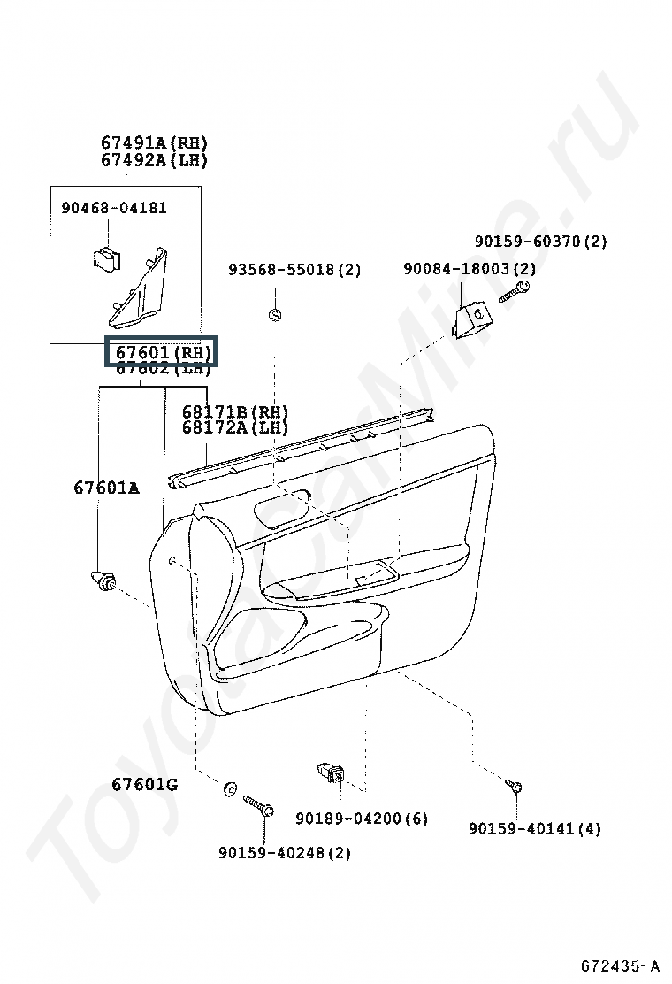 67610-3T083-B0, BOARD SUB-ASSY, FRONT DOOR TRIM, RH