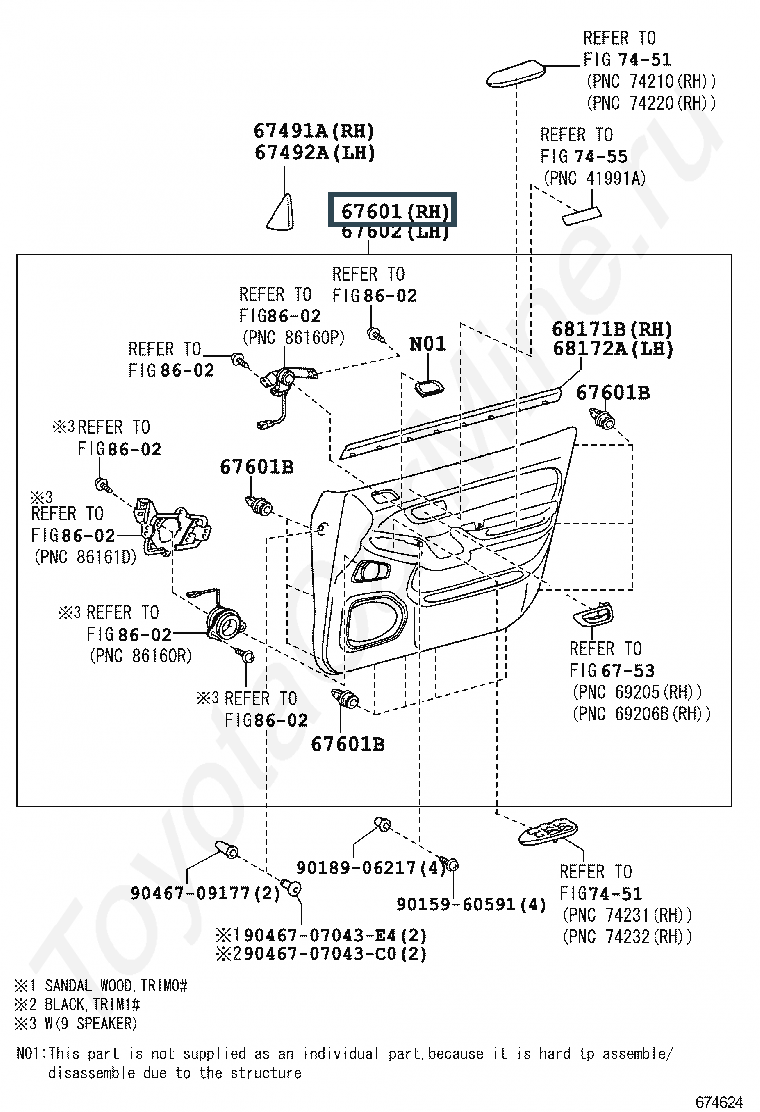 67610-6A110-B0, BOARD SUB-ASSY, FRONT DOOR TRIM, RH