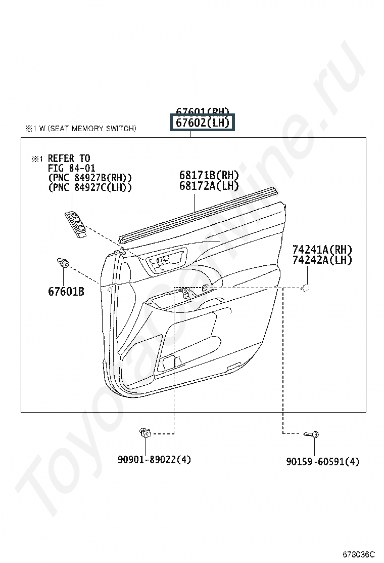 67620-0E322-C6, BOARD SUB-ASSY, FRONT DOOR TRIM, LH