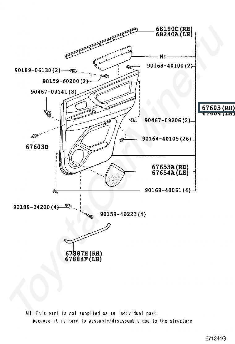 67630-60562-A0, BOARD SUB-ASSY, REAR DOOR TRIM, RH