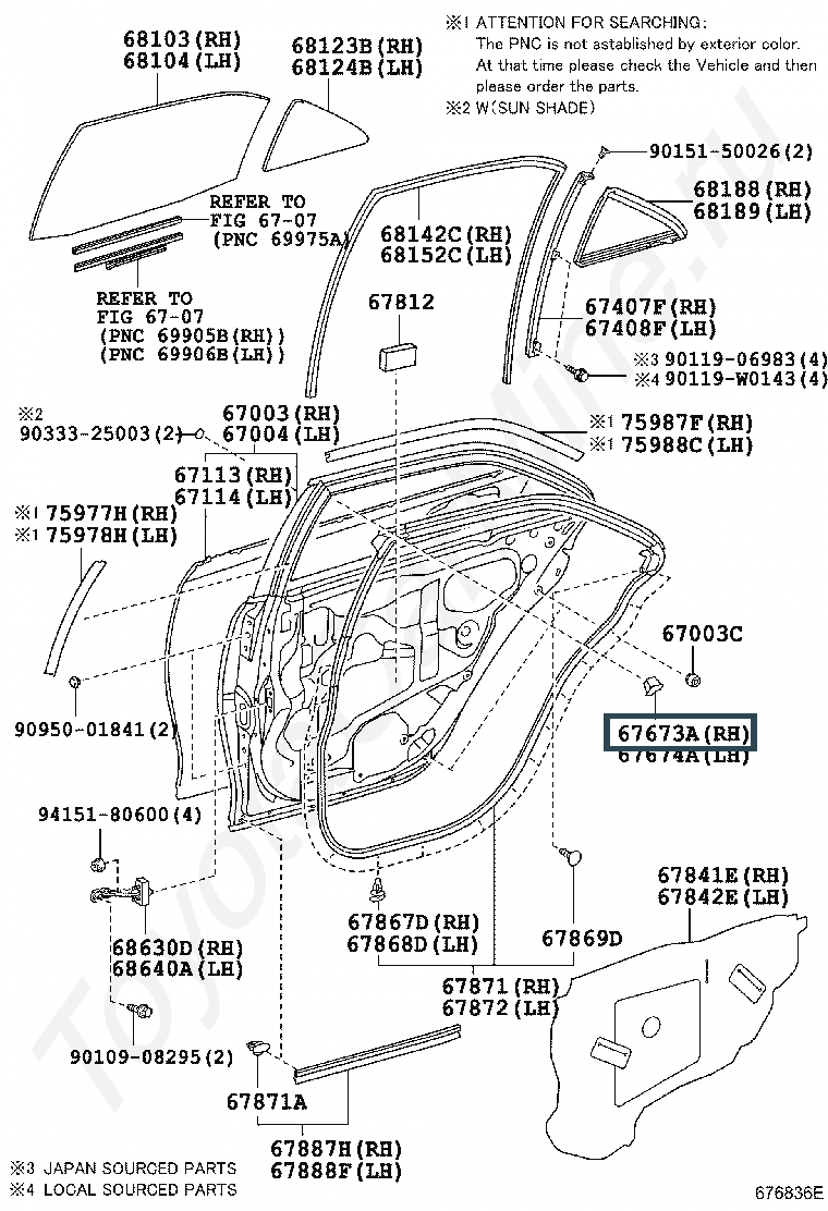 67673-33121, GARNISH, REAR DOOR FRAME, RH