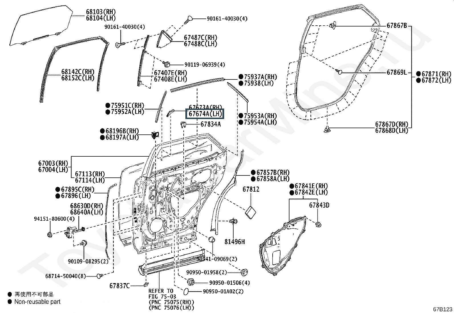 67674-48040, GARNISH, REAR DOOR FRAME, LH