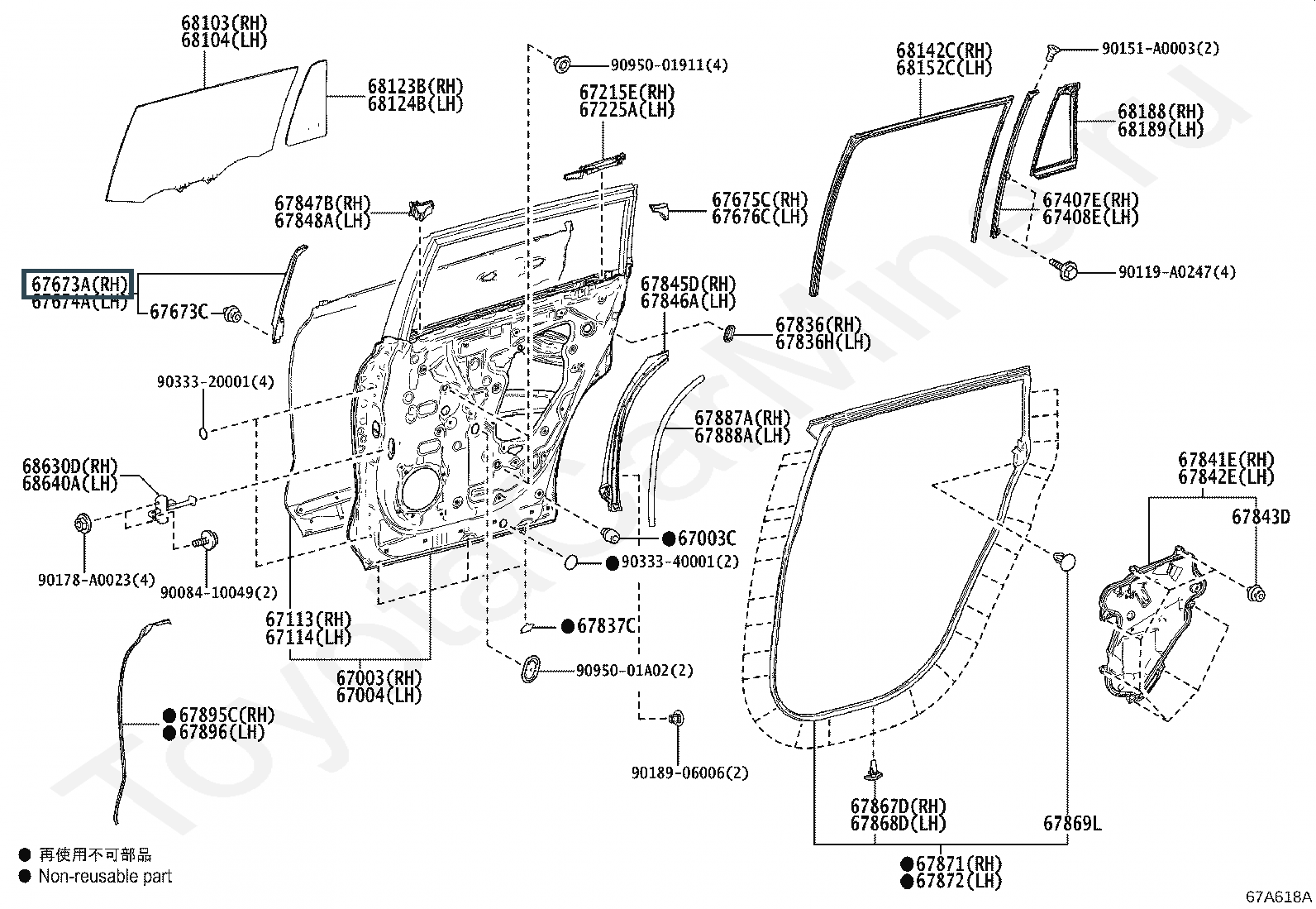 67675-0E010, GARNISH, REAR DOOR FRAME, RH