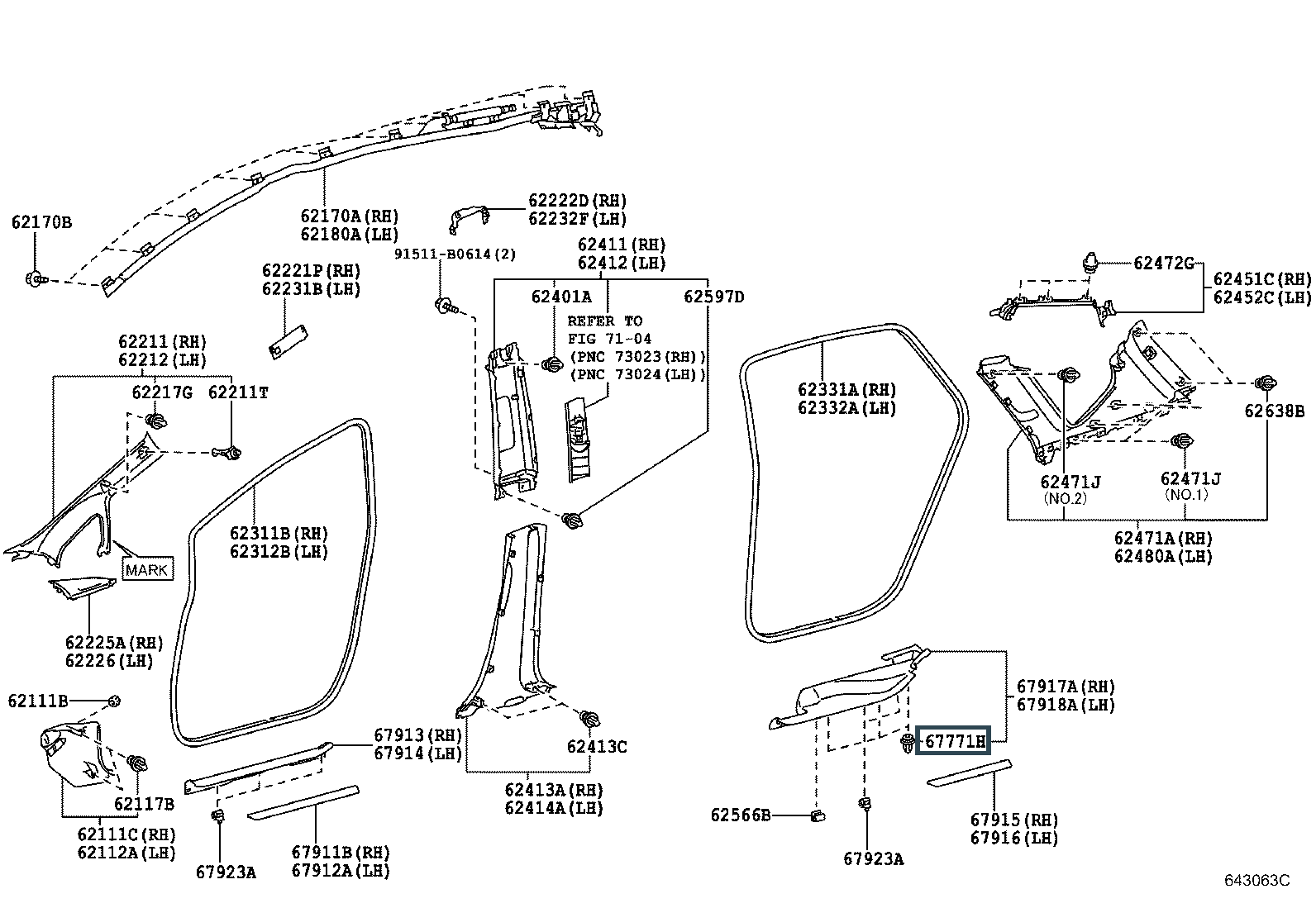 67771-26240, RETAINER, DOOR TRIM