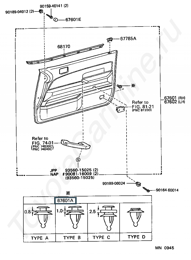 67771-30070, RETAINER(FOR REAR DOOR TRIM BOARD)