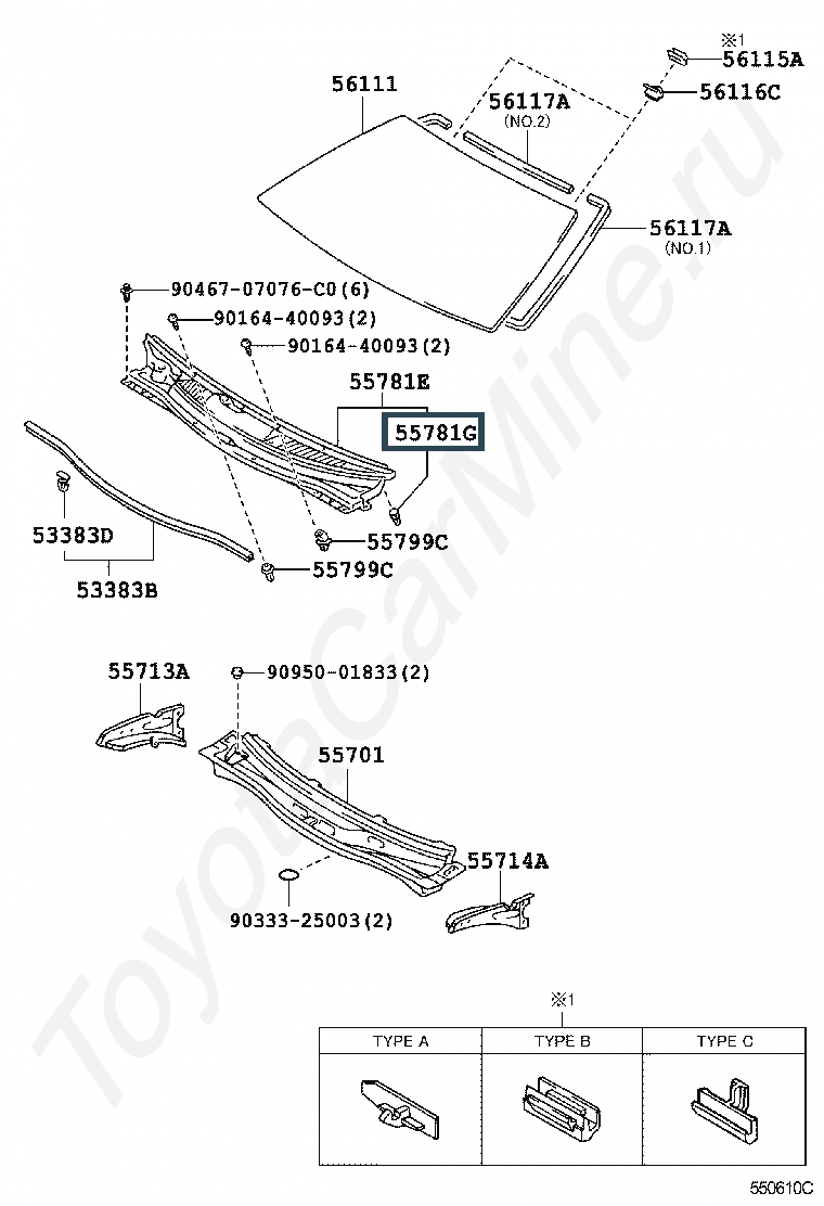 67771-32150, CLIP, COWL TOP VENTILATOR LOUVER