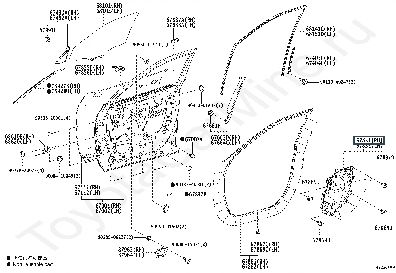 67831-0E090, COVER, FRONT DOOR SERVICE HOLE, RH