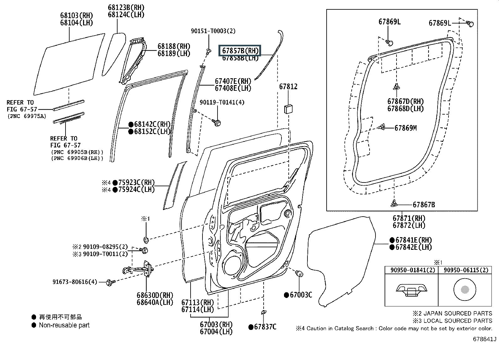 67857-0K030, PROTECTOR, REAR DOOR PANEL, RH