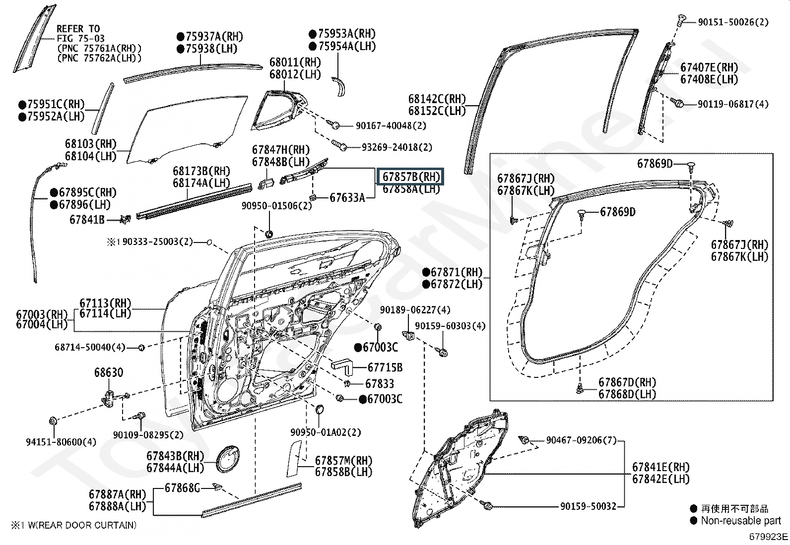 67857-33090, PROTECTOR, REAR DOOR PANEL, RH