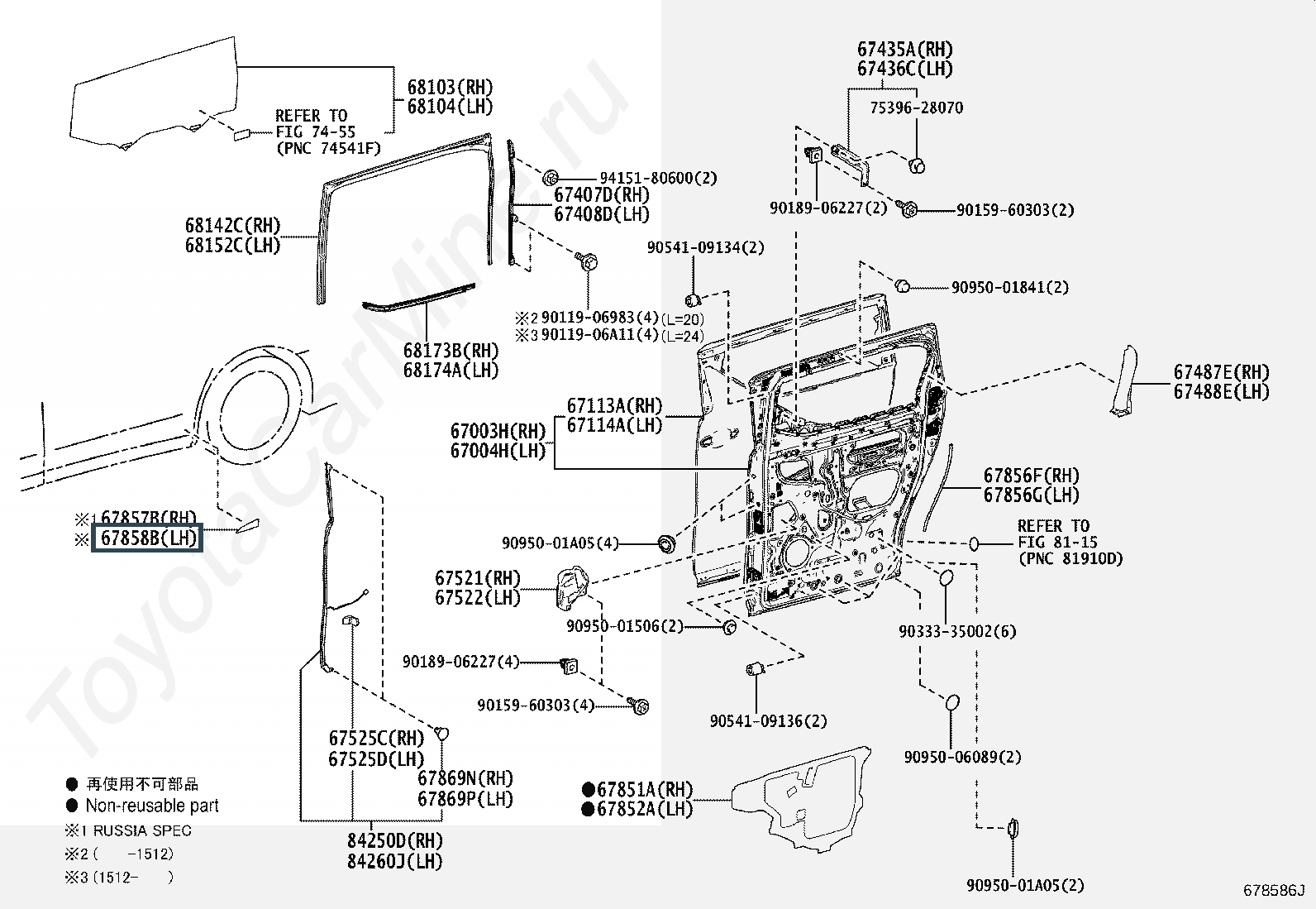 67858-58010, PROTECTOR, REAR DOOR PANEL, LH