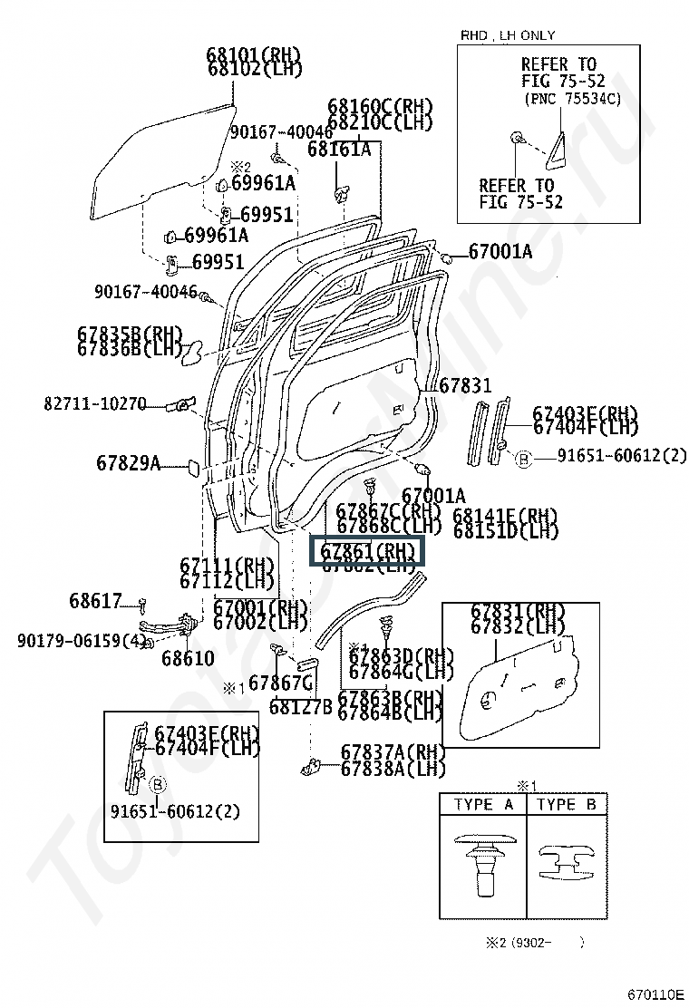 67861-26030, WEATHERSTRIP, FRONT DOOR, RH