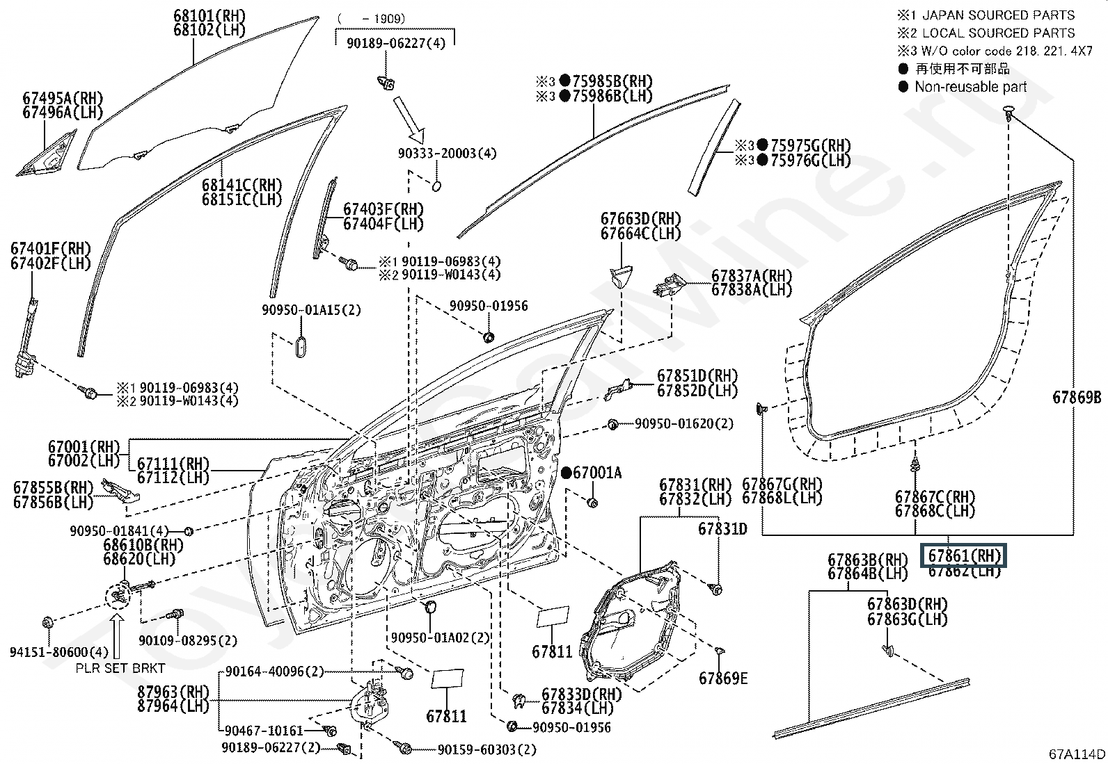 67861-33120, WEATHERSTRIP, FRONT DOOR, RH