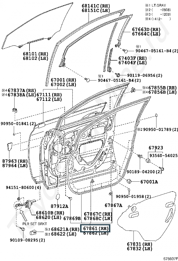 67861-48070, WEATHERSTRIP, FRONT DOOR, RH
