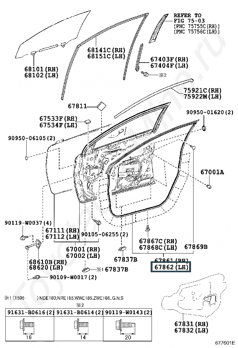 67862-02250, WEATHERSTRIP, FRONT DOOR, LH