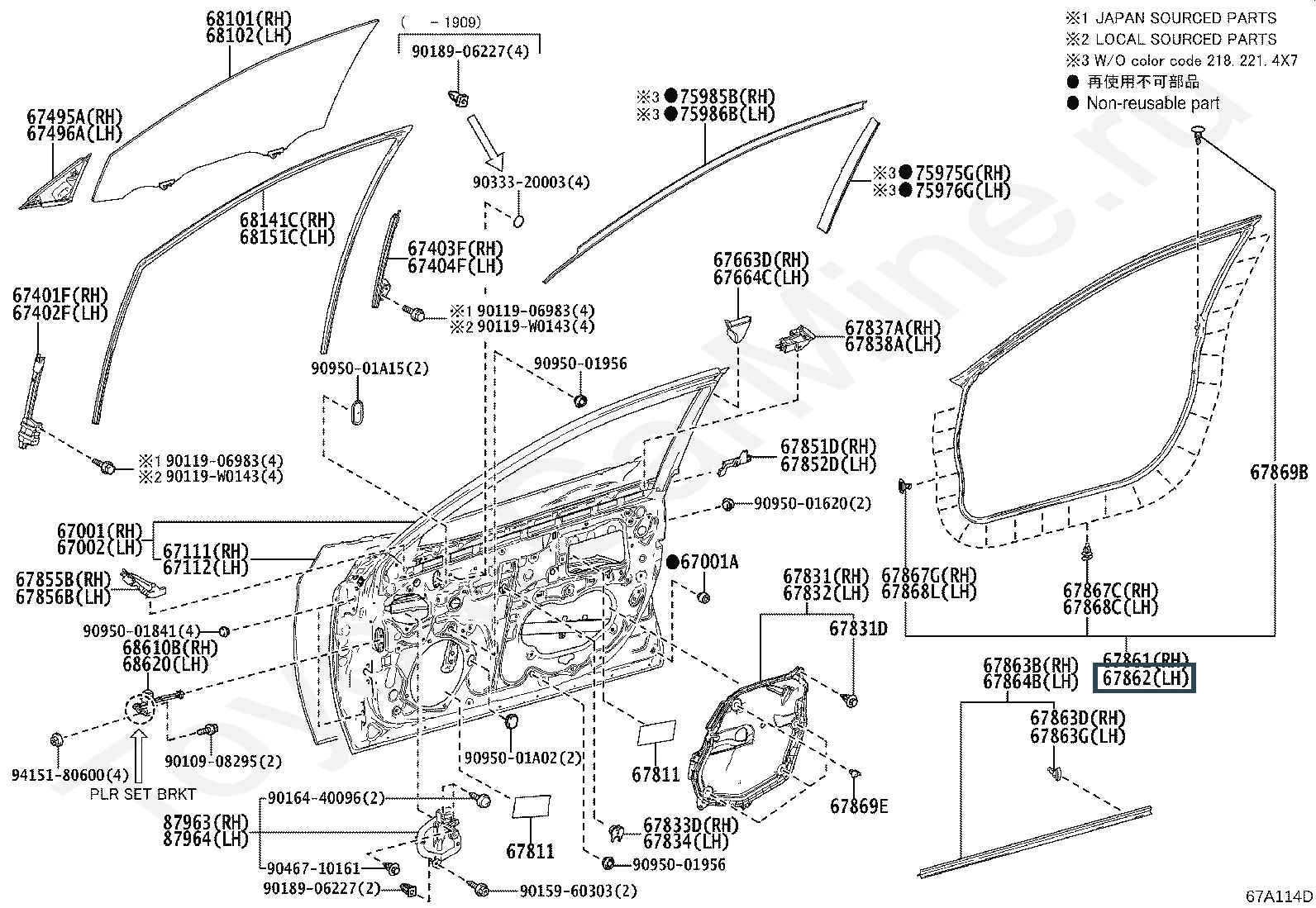 67862-33120, WEATHERSTRIP, FRONT DOOR, LH