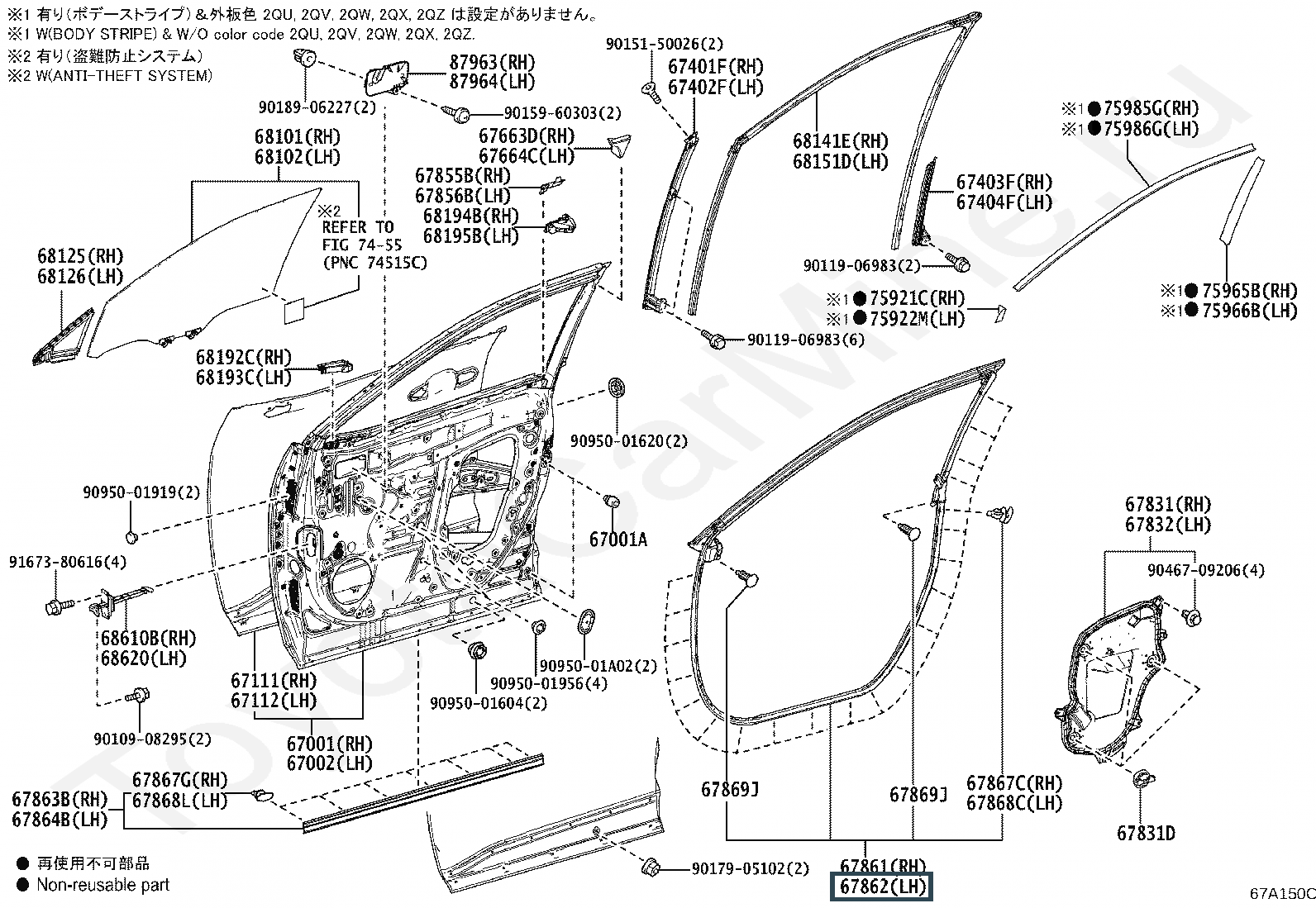 67862-42120, WEATHERSTRIP, FRONT DOOR, LH