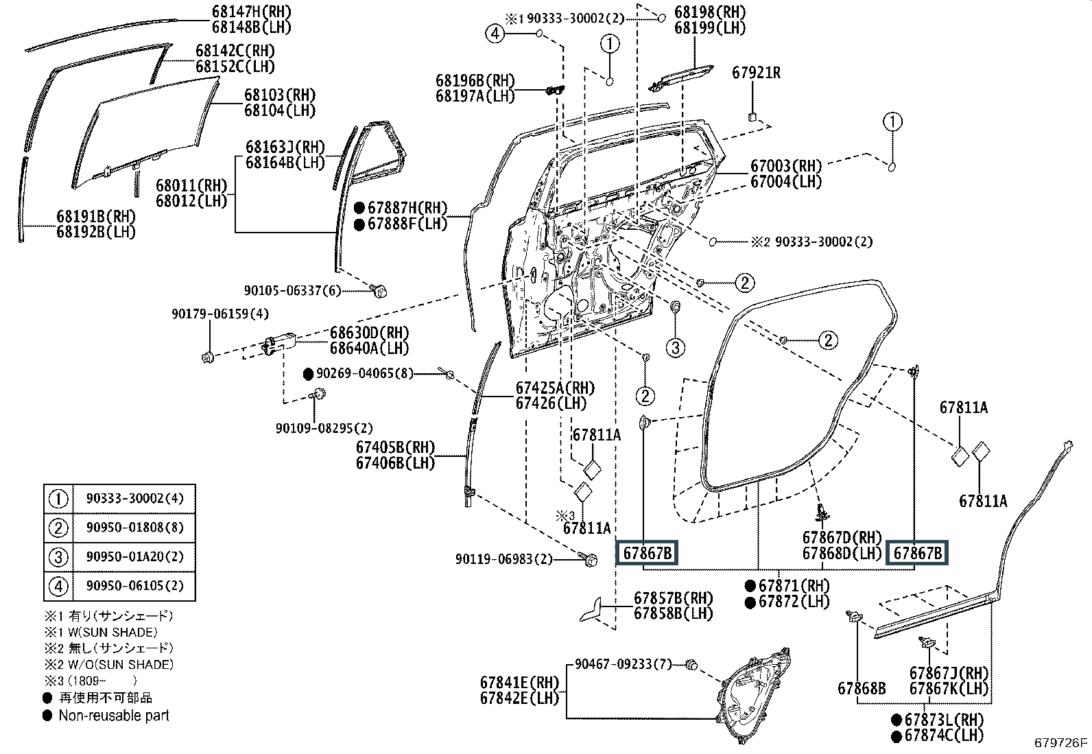 67867-50120, RETAINER, REAR DOOR WEATHERSTRIP, LH