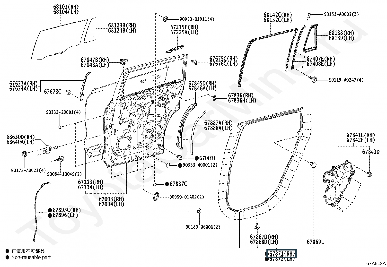67871-0E080, WEATHERSTRIP, REAR DOOR, RH