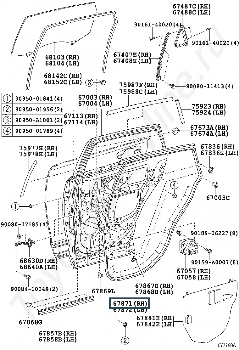 67871-0T010, WEATHERSTRIP, REAR DOOR, RH