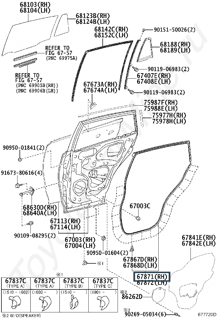 67871-42070, WEATHERSTRIP, REAR DOOR, RH