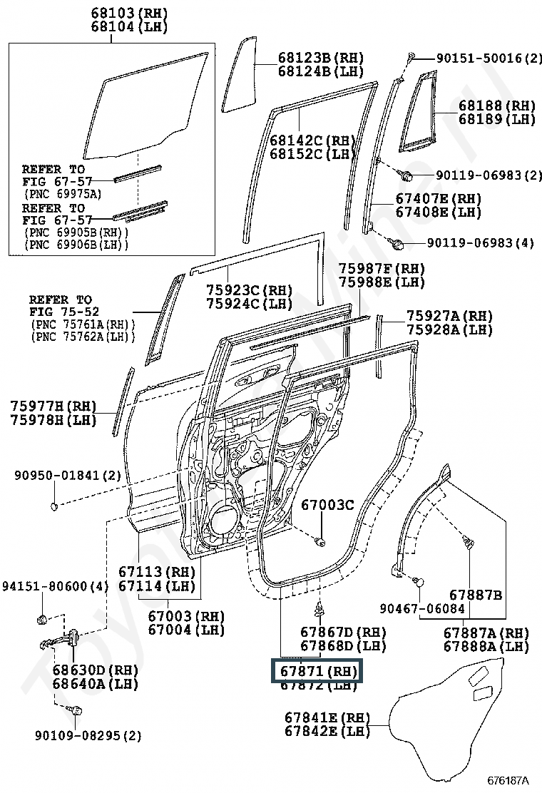 67871-60130, Уплотнитель задней правой двери