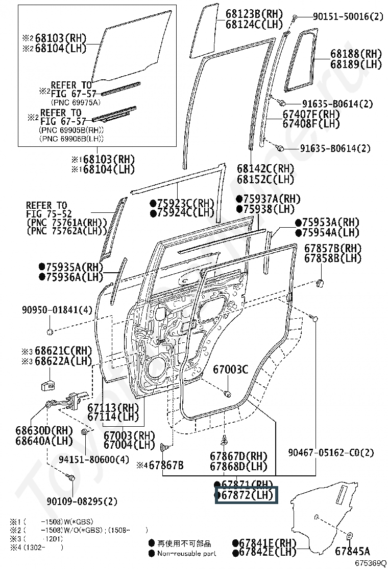 67872-60110, Уплотнитель задн лев двери