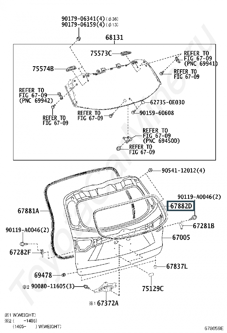 67882-0E030, WEATHERSTRIP, BACK DOOR, NO.2
