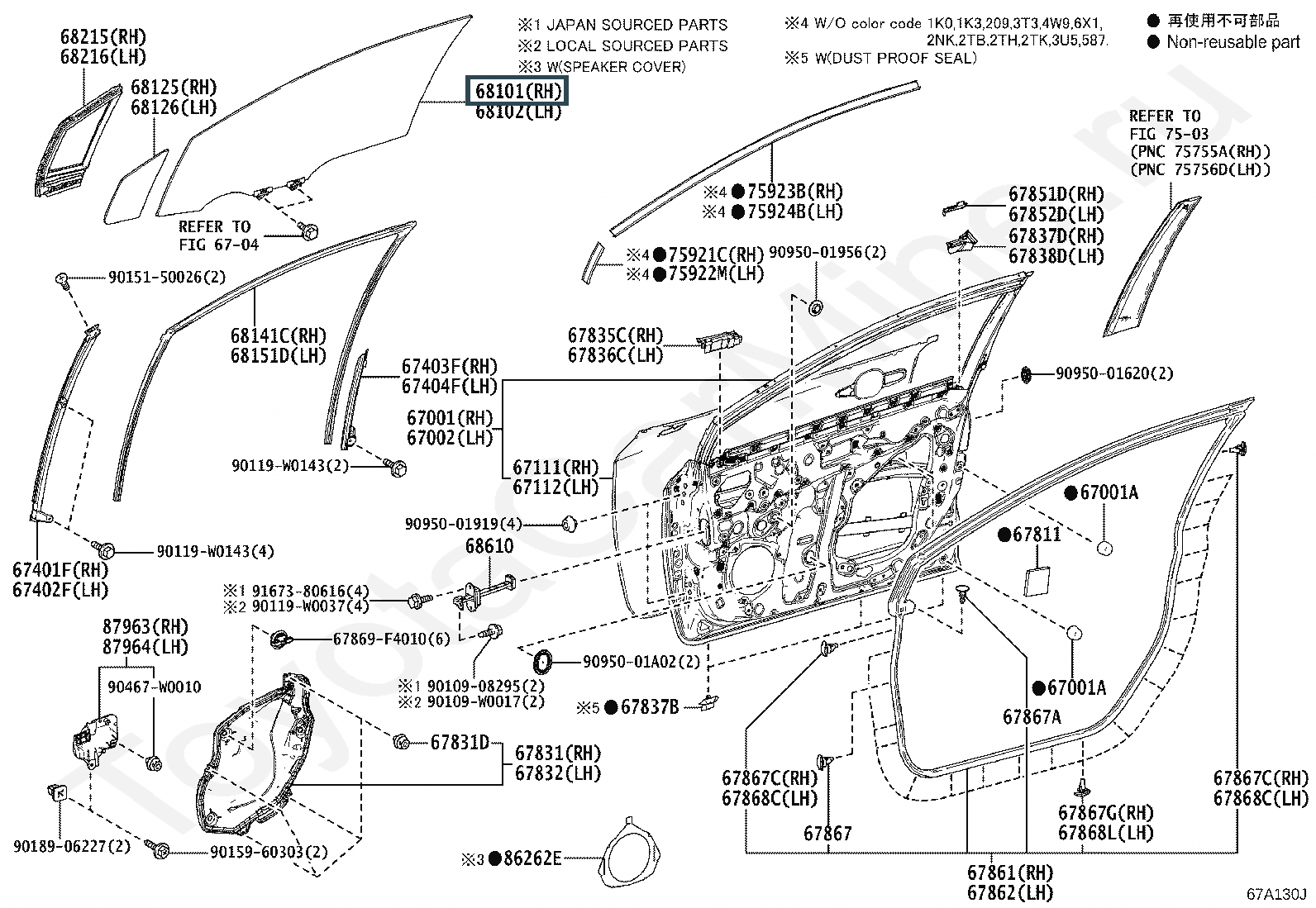 Название по каталогу: GLASS SUB-ASSY, FRONT DOOR, RH