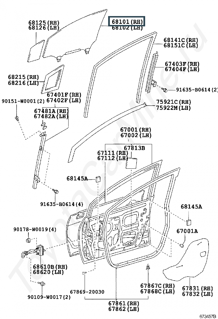 Название по каталогу: GLASS SUB-ASSY, FRONT DOOR, RH