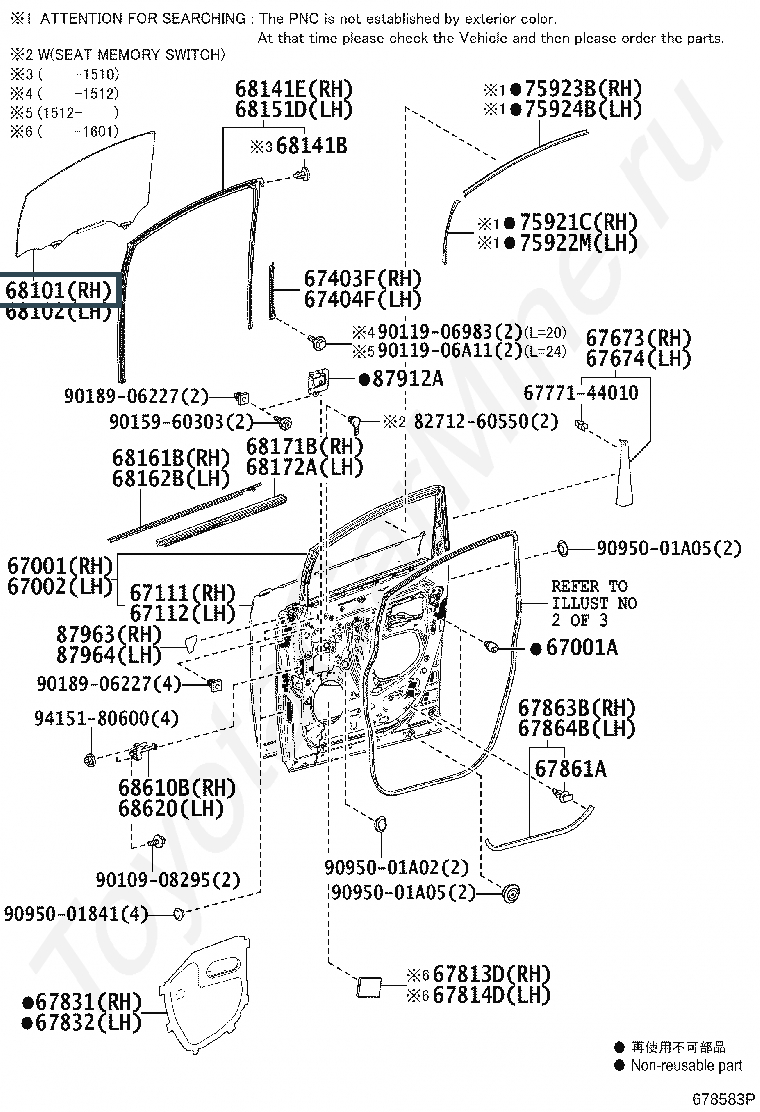 Название по каталогу: GLASS SUB-ASSY, FRONT DOOR, RH