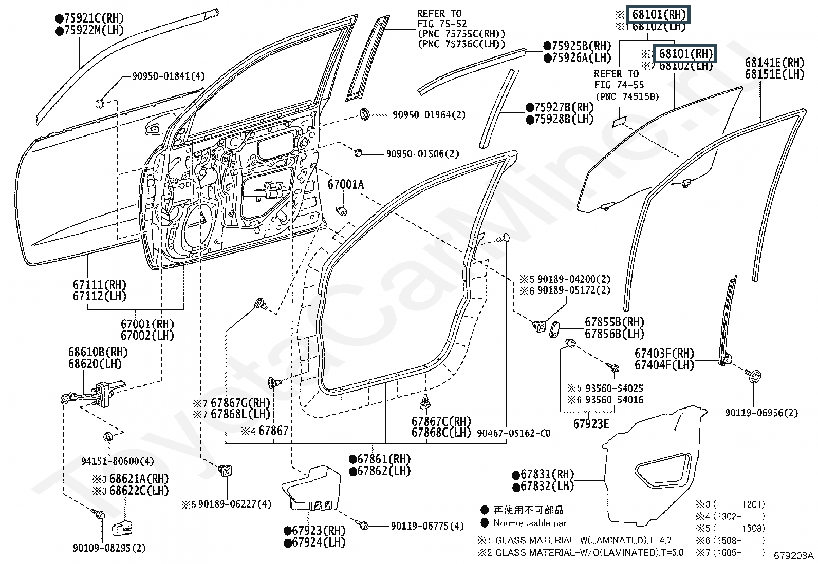 68101-60561, Стекло передней двери, правое