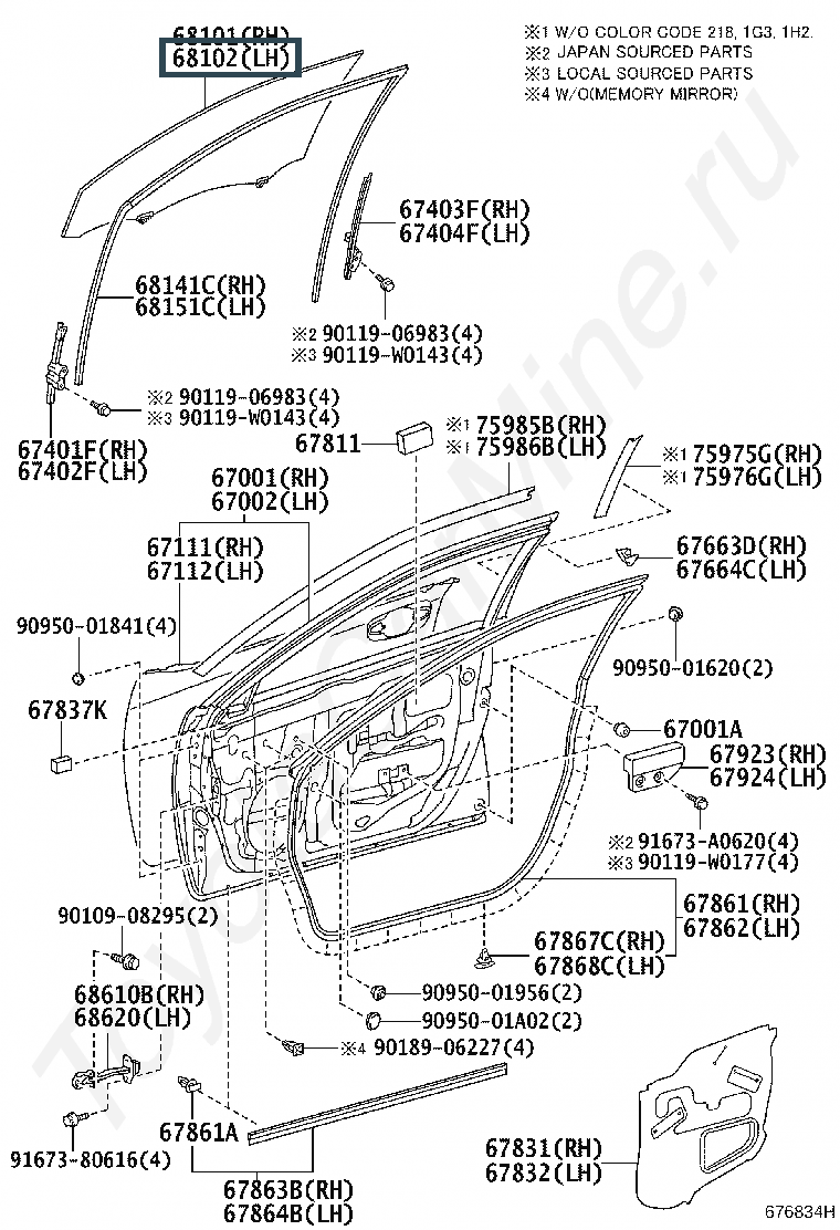 Название по каталогу: GLASS SUB-ASSY, FRONT DOOR, LH