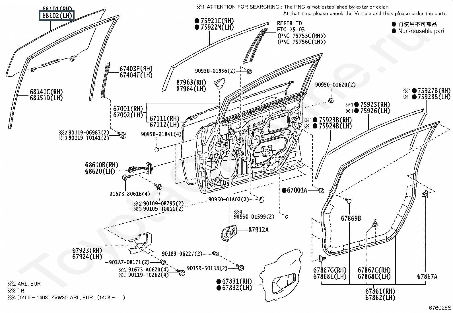 Название по каталогу: GLASS SUB-ASSY, FRONT DOOR, LH