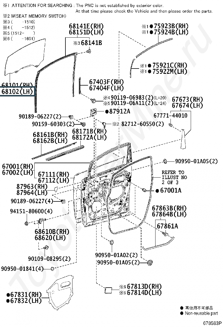Название по каталогу: GLASS SUB-ASSY, FRONT DOOR, LH