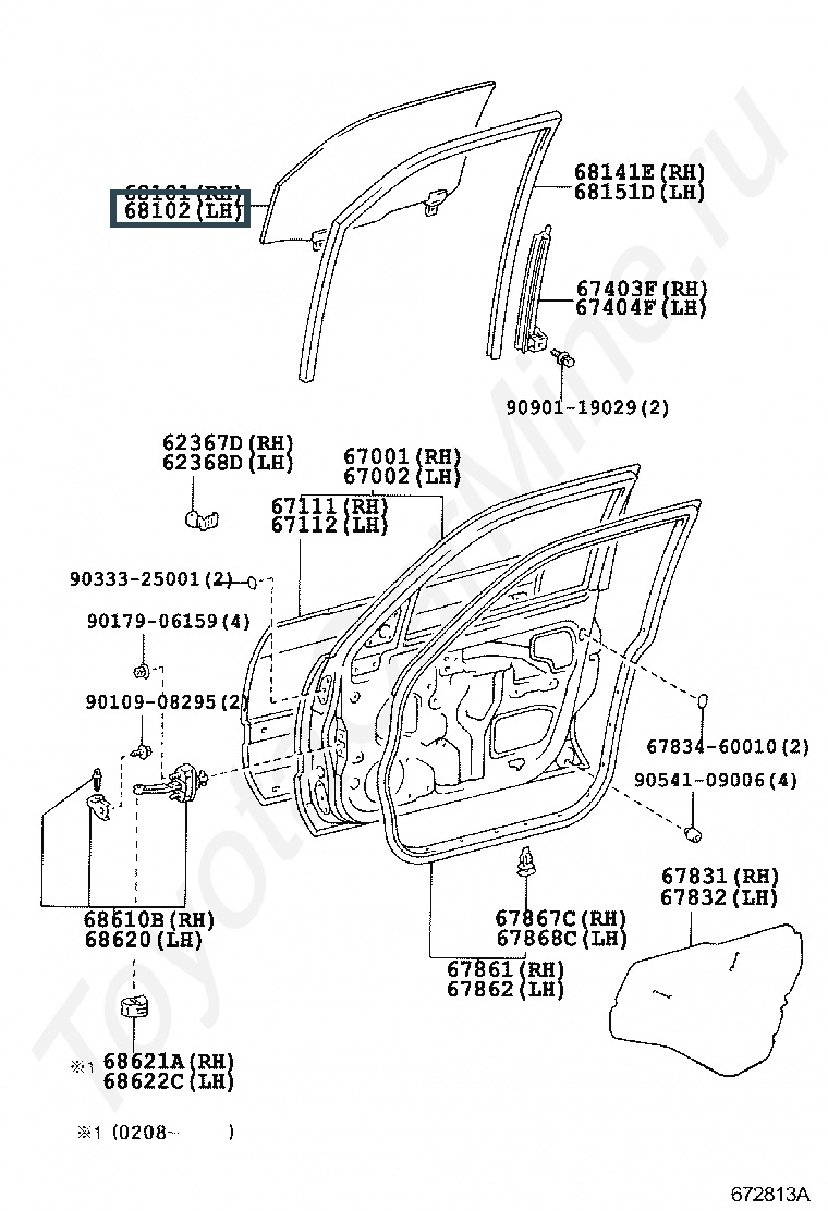 Название по каталогу: GLASS SUB-ASSY, FRONT DOOR, LH