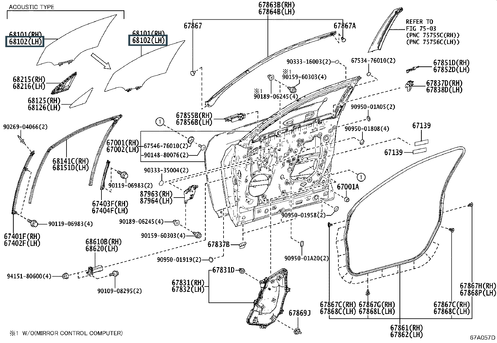 68102-76111, GLASS SUB-ASSY, FRONT DOOR, LH