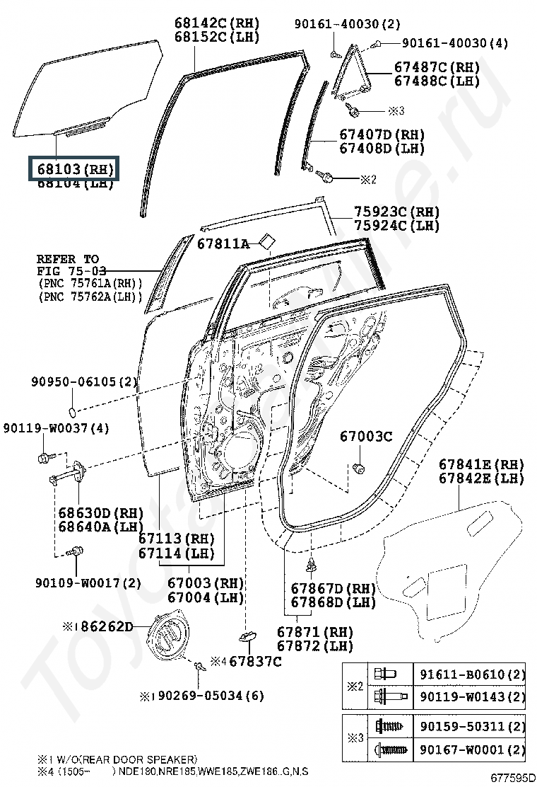 Название по каталогу: GLASS SUB-ASSY, REAR DOOR, RH