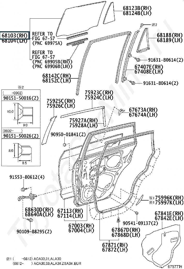 Название по каталогу: GLASS SUB-ASSY, REAR DOOR, RH