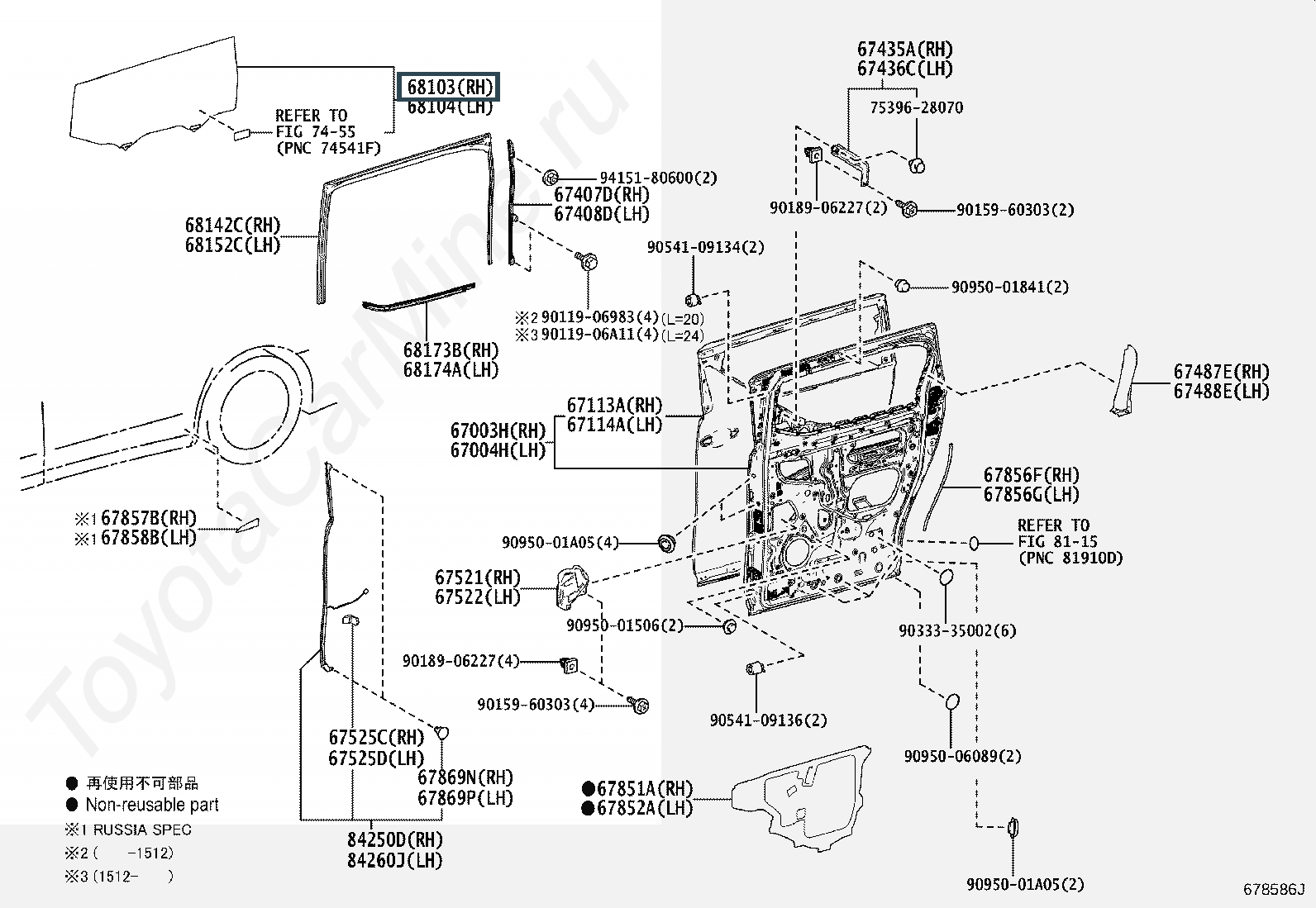 68103-58110, Стекло заднее правое