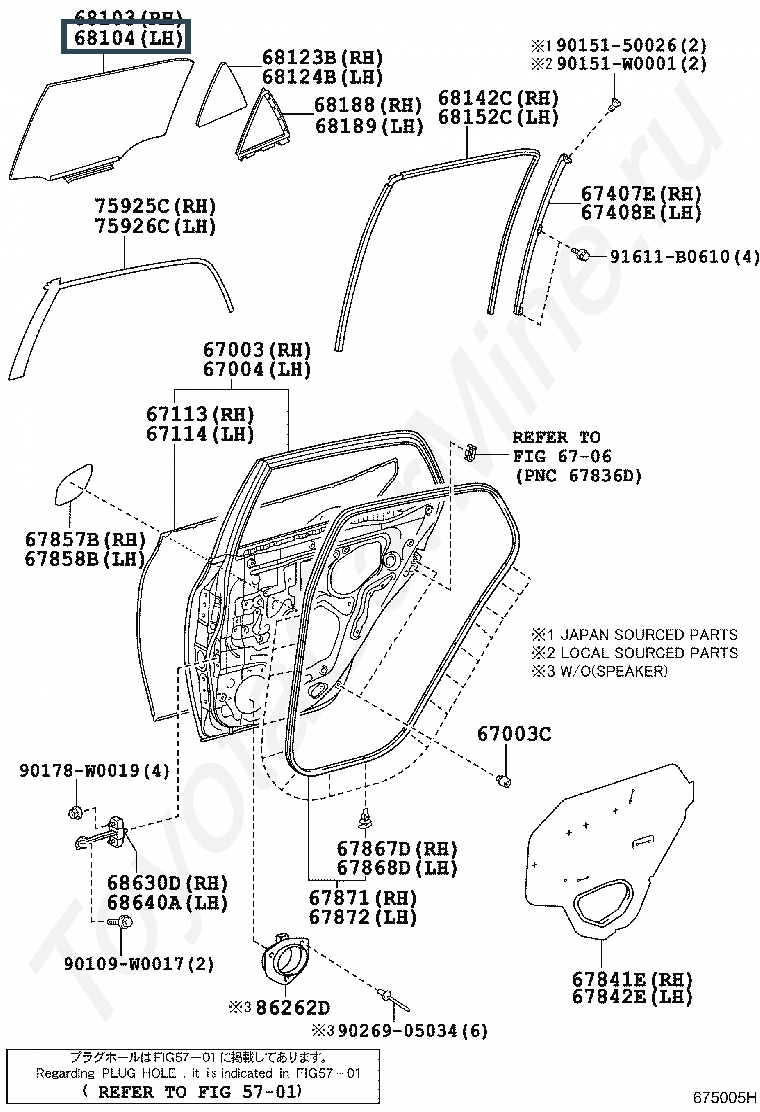 68104-02200, Стекло задней двери левое