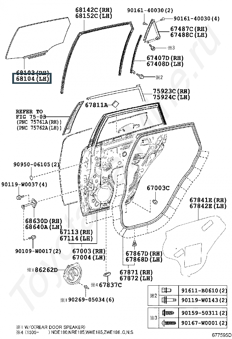 68104-02340, Стекло левой задней двери