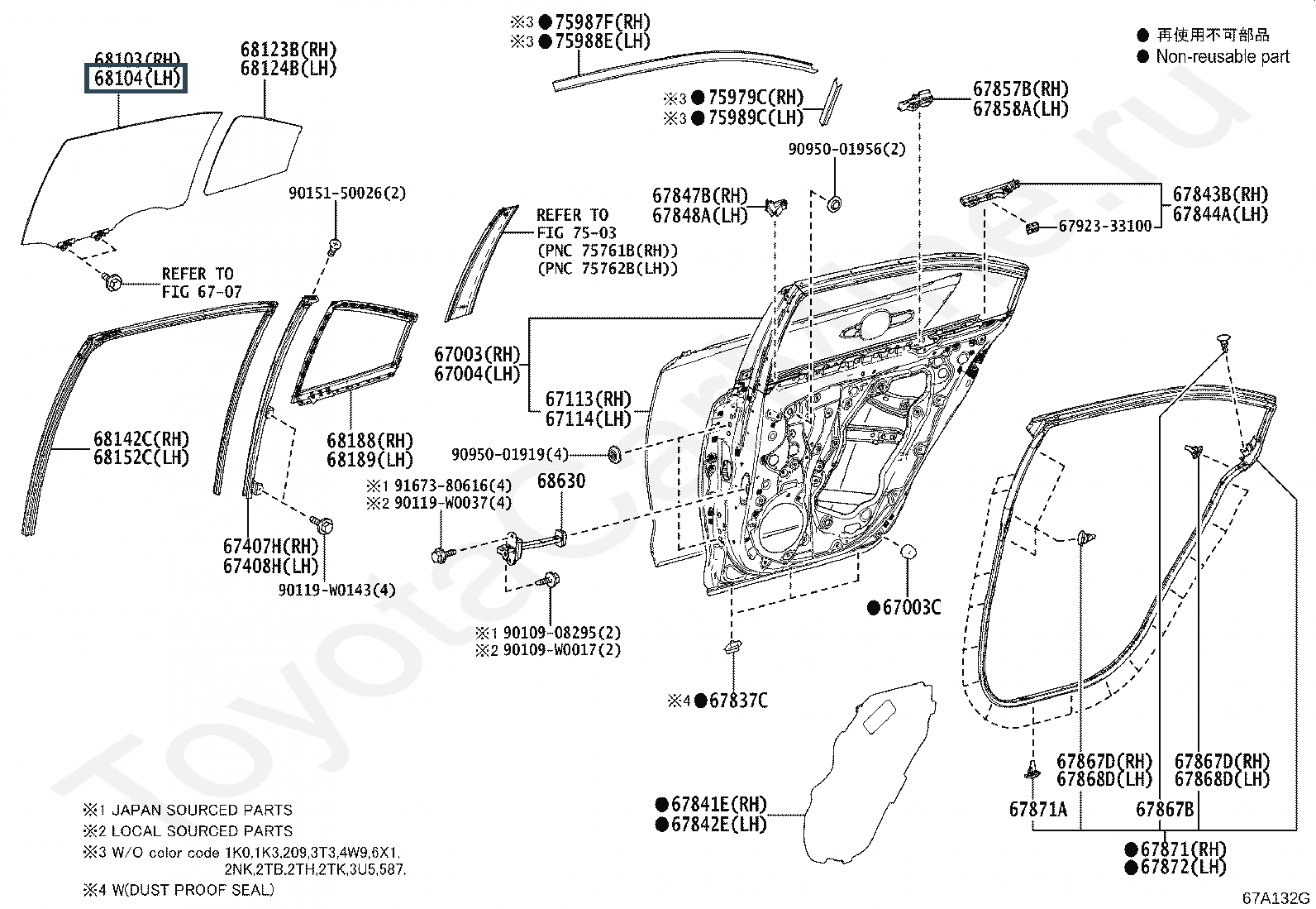 68104-02590, стекло заднее левое