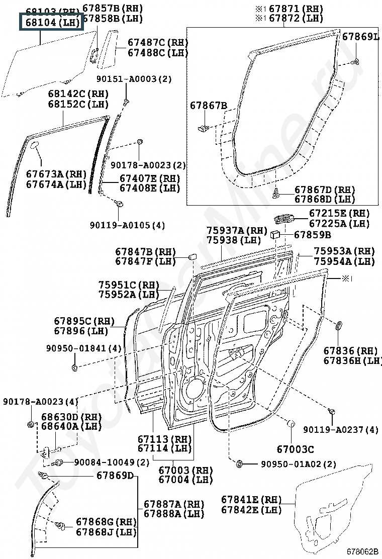 Название по каталогу: GLASS SUB-ASSY, REAR DOOR, LH